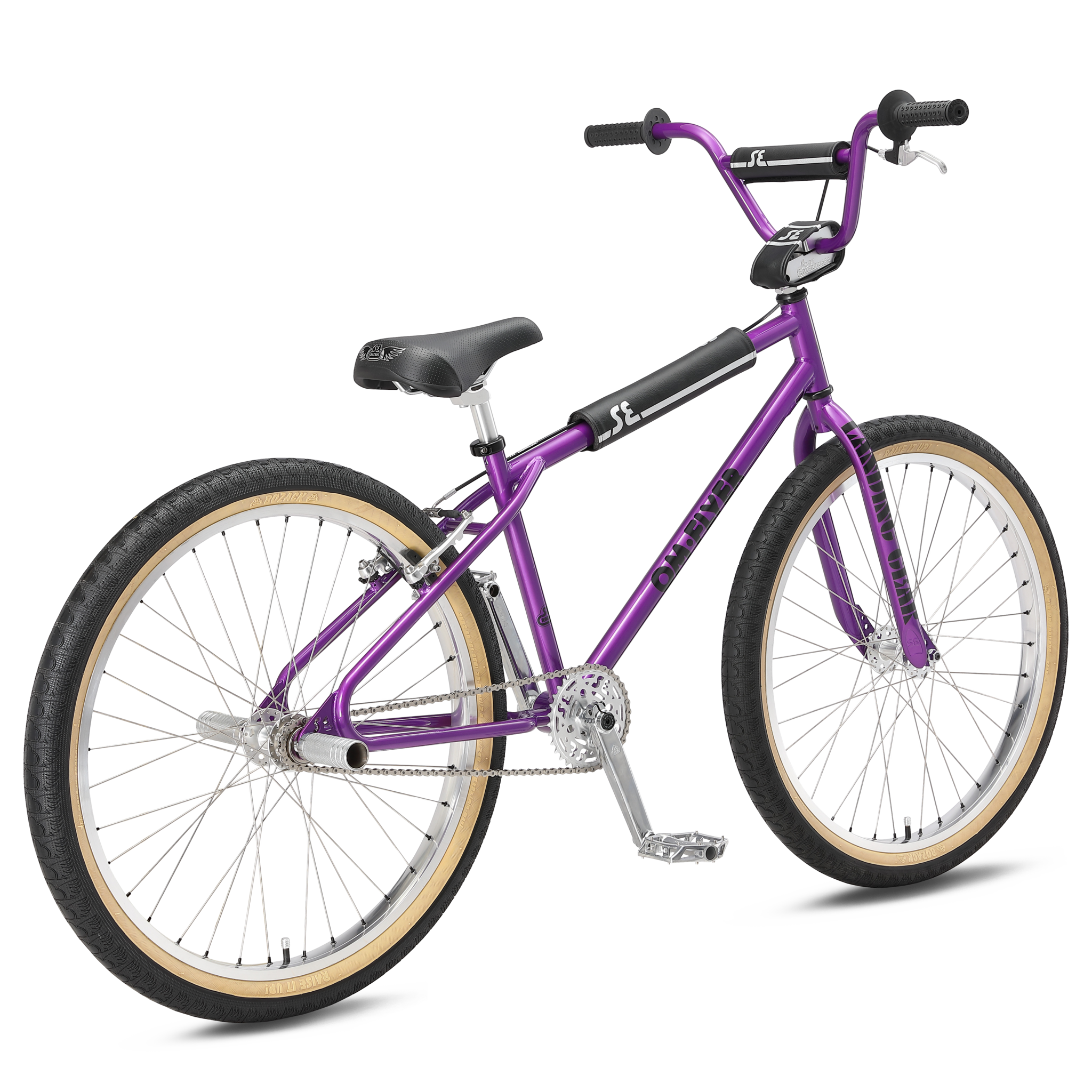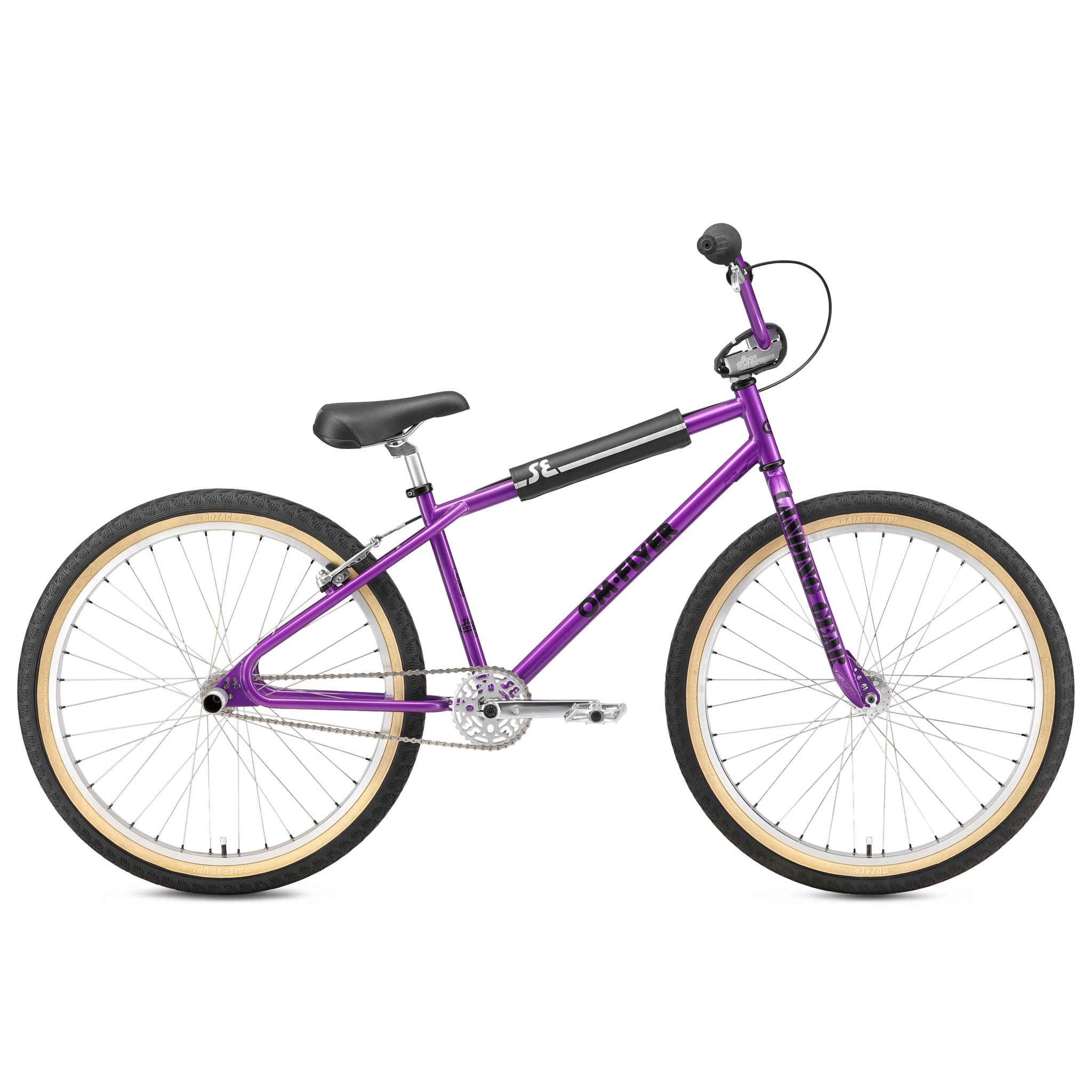 The 26" OM Flyer "Old Man," honors SE Bikes founder Scot Breithaupt. Blending BMX legacy with modern flair, a classic 100% Cr-Mo frame unique SE Mohawk flip flop hubs, double-wall rims, Bozack tires, retro Scot Enterprises stem and Oakley B-1B grips.
