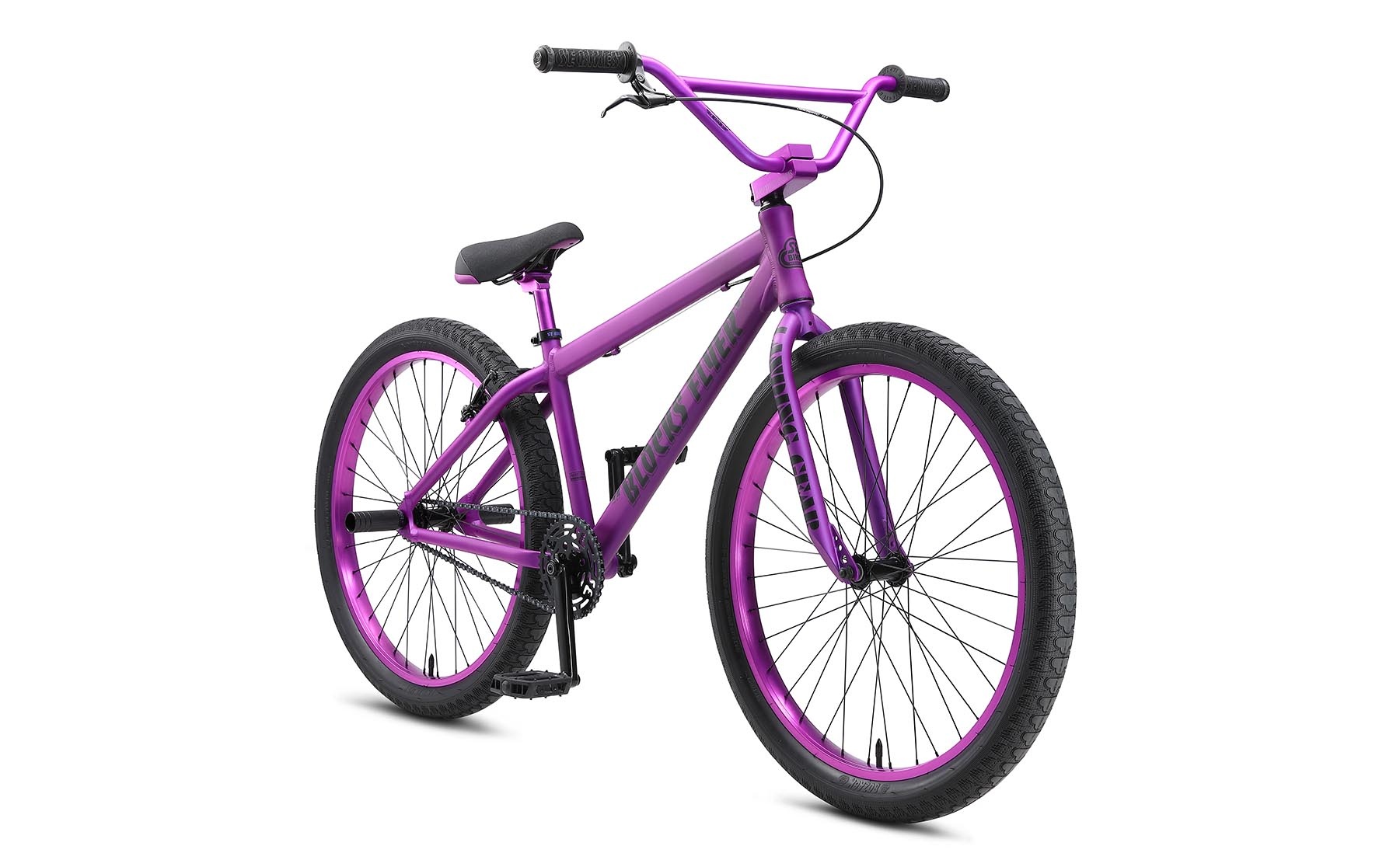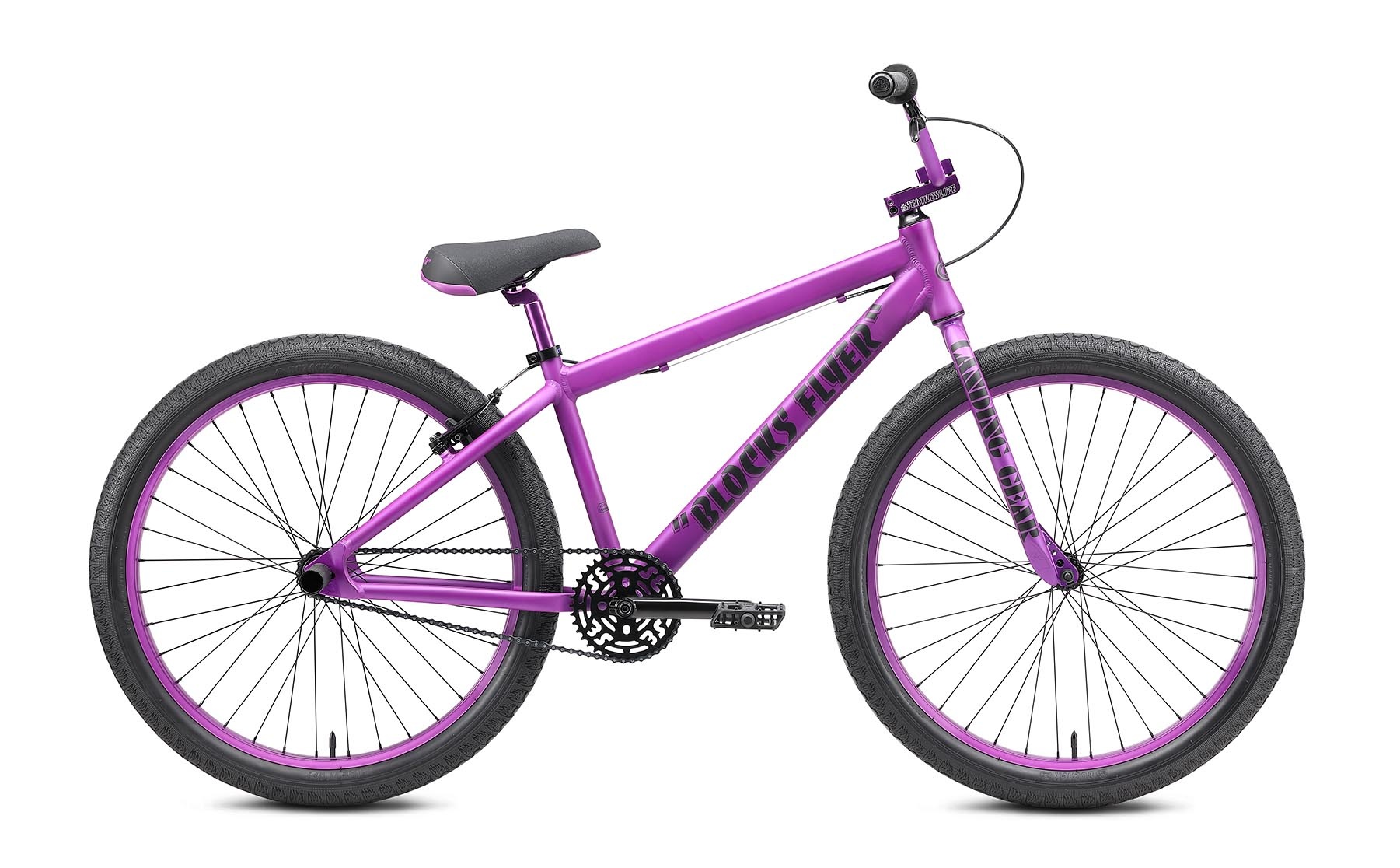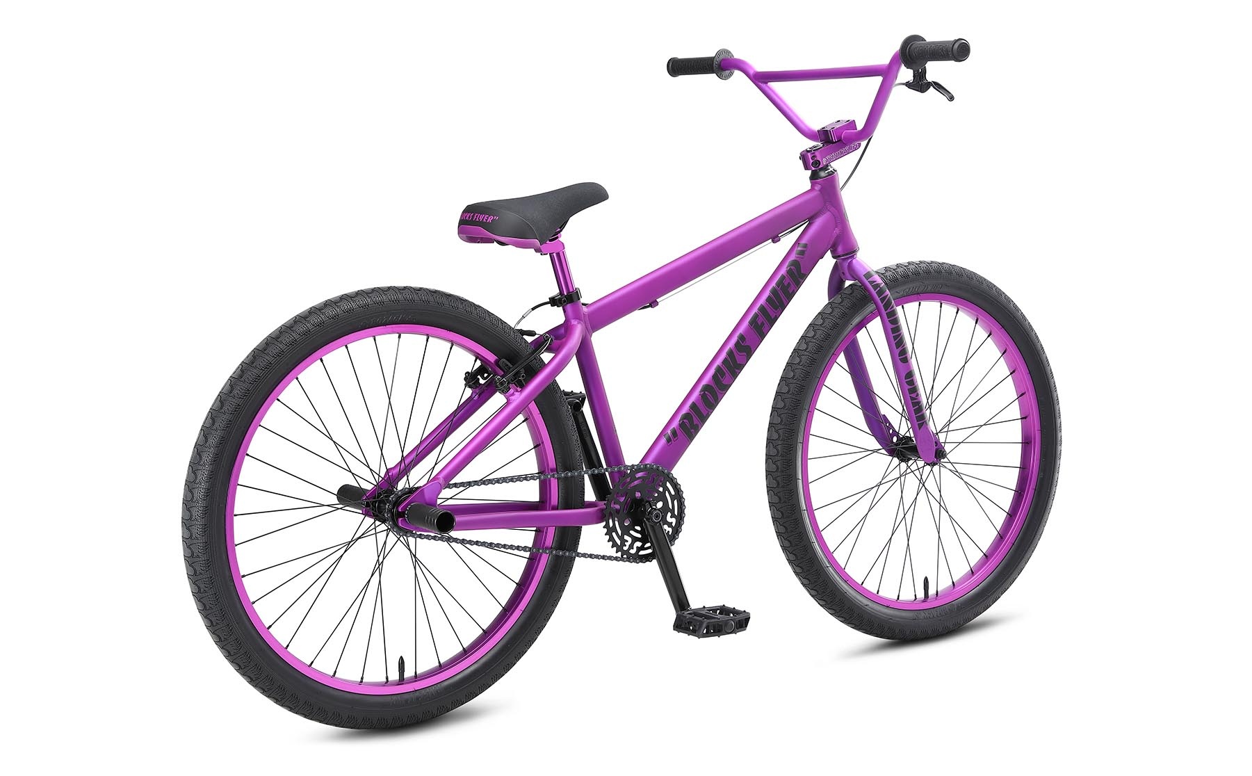 The Blocks Flyer frame comes equipped with an internal headset and mid-bottom bracket. The 26” x 2.4” Bozack tires ride smooth and provide super traction for those swerves. If you want to be all about that SE bike life, you need to be riding the Blocks Flyer!