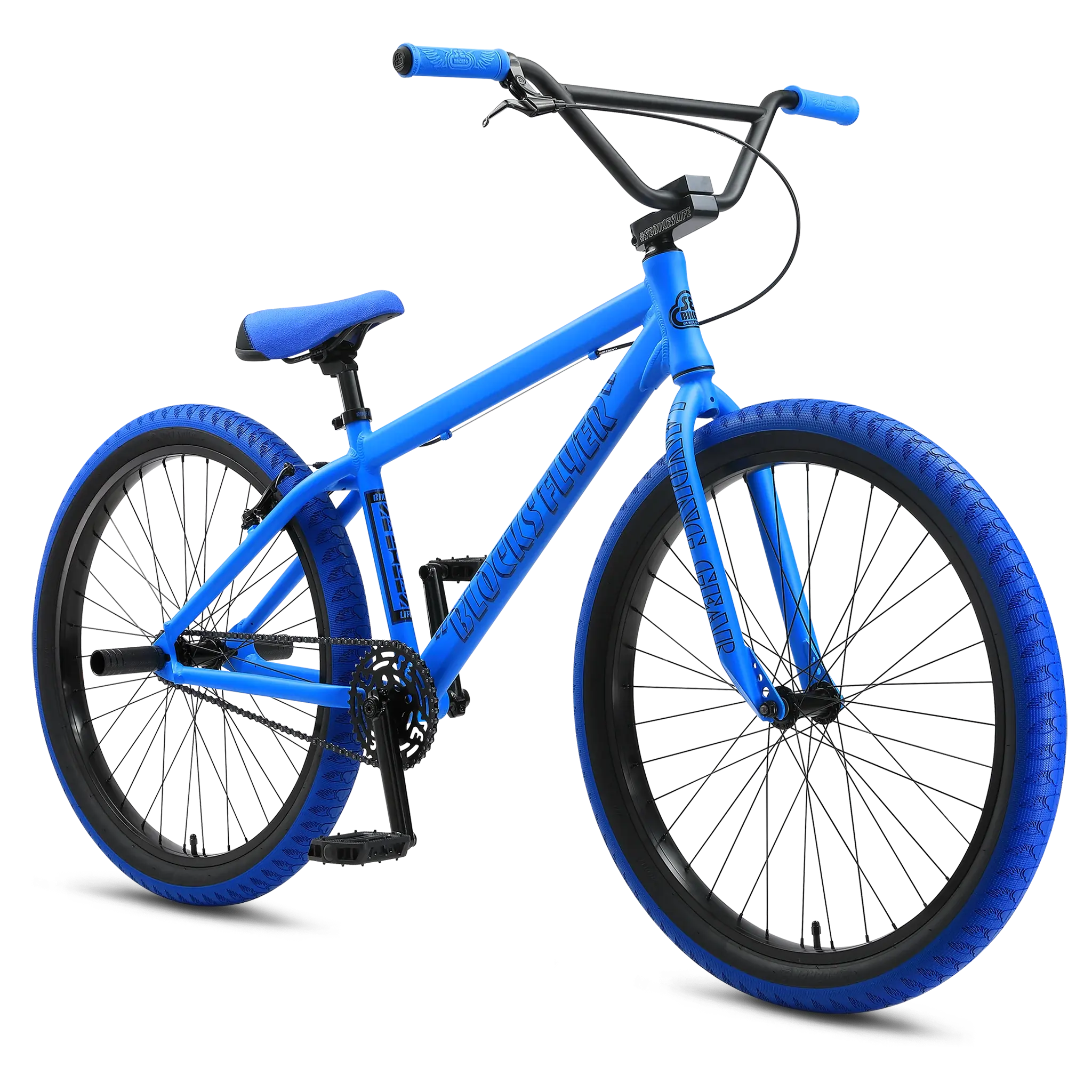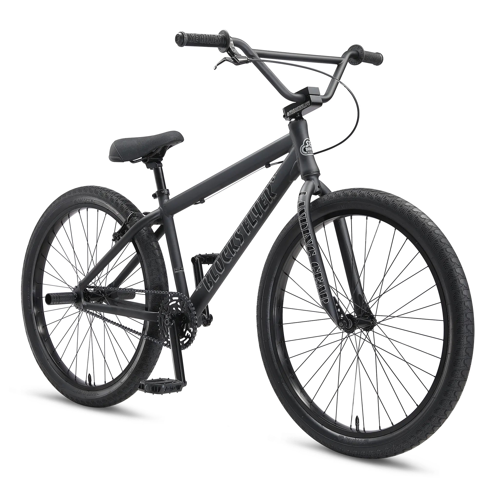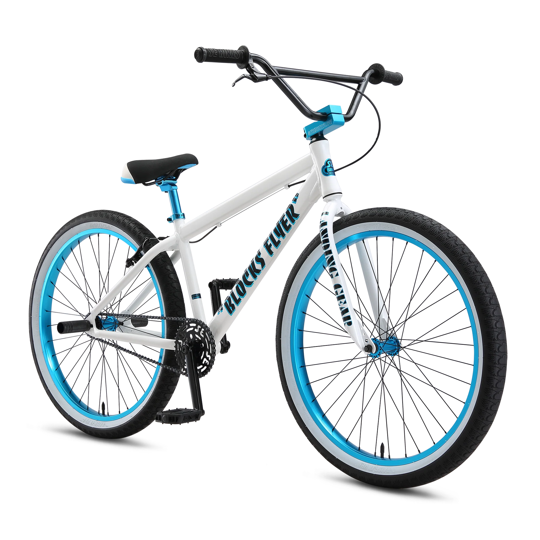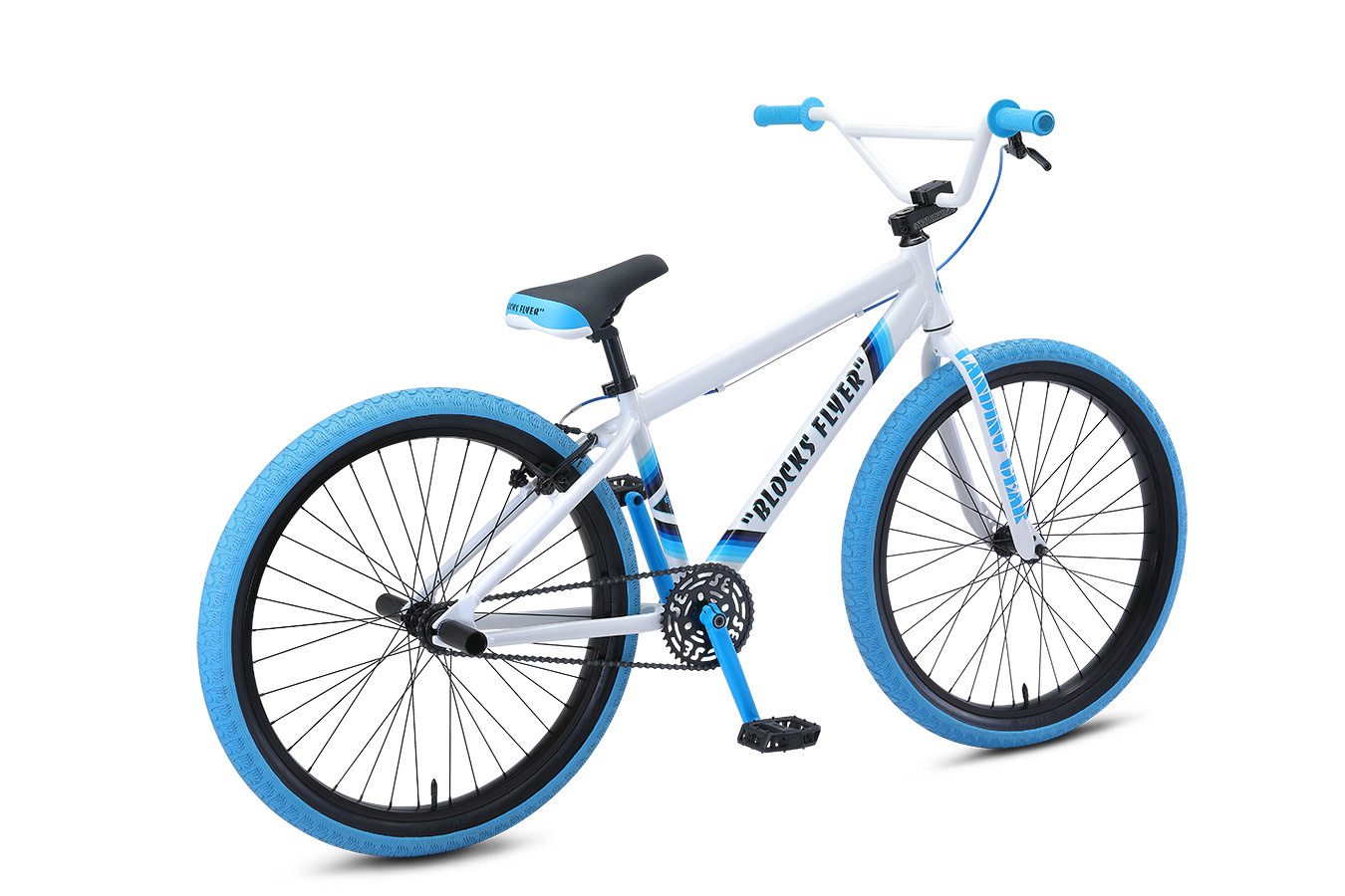 The Blocks Flyer frame comes equipped with an internal headset and mid-bottom bracket. The 26” x 2.4” Bozack tires ride smooth and provide super traction for those swerves. If you want to be all about that SE bike life, you need to be riding the Blocks Flyer!